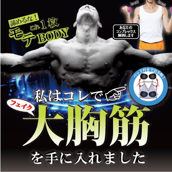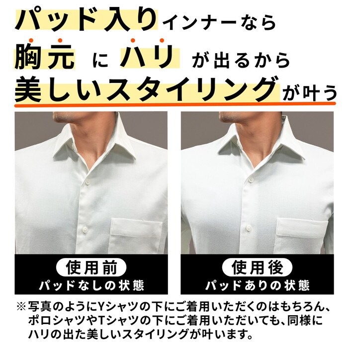 | 商品説明 | 『フェイク大胸筋パッド付インナー』パッドで胸元を自然にボリュームアップ着用するだけで引き締まった逆三角形シルエットを演出スタイリッシュなデザインで自信をサポート |