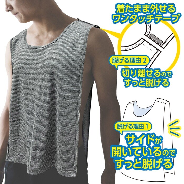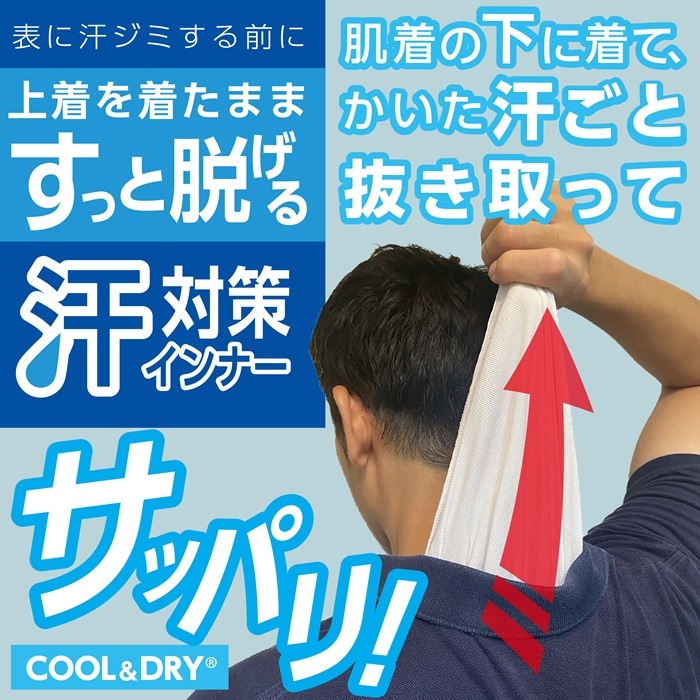 | 商品説明 | 肌着の下に着て、かいた汗ごと抜き取ってサッパリ!着たまま外せるワンタッチテープ付き。サイドが開いているのですっと脱げる。消臭、吸水速乾、さらさらタッチ。 |