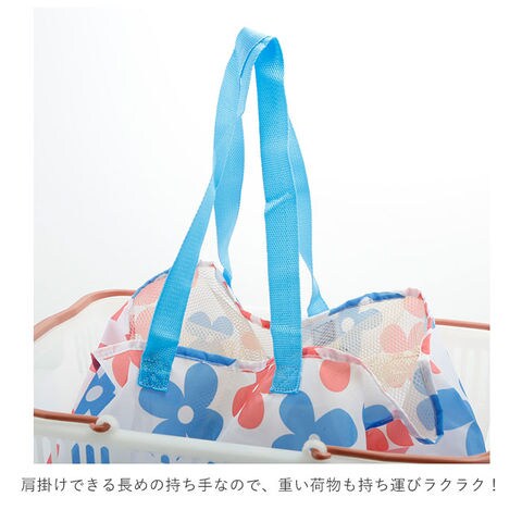 | 商品説明 | いつものお買い物に!レジカゴにぴったりのお買い物バッグ!軽くて丈夫なポリエステルを使用。レジカゴにすっぽり入るサイズなので、お会計後の袋詰めの手間が省ける♪開口部は巾着タイプなので、中の物が飛び出しにくい!巾着部分はメッシュ素材なので、中が確認しやすく、買い忘れの防止にも◎使わない時は小さくたたんでおけるので、持ち運びに便利♪肩掛けできる長めの持ち手なので、重い荷物も持ち運びラクラク!お買い物が楽しくなる、さわやかなカラーのフラワー柄♪ |
