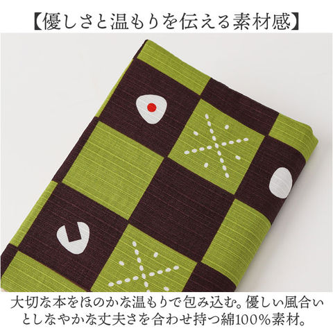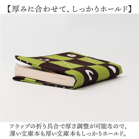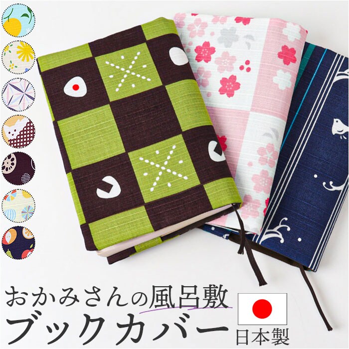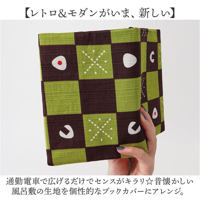 商品説明【風呂敷の生地で、新読書スタイル】レトロ&モダンな絵柄で人気の「おかみさんの風呂敷」から、可愛らしい「ブックカバー」が新登場。【レトロ&モダンがいま、新しい】通勤電車で広げるだけでセンスがキラリ☆昔懐かしい風呂敷の生地を個性的なブックカバーにアレンジ。【厚みに合わせて、しっかりホールド】フラップの折り具合で厚さ調整が可能なので、薄い文庫本も厚い文庫本もしっかりホールド。【続きが読みたくなるしおり付き】読みかけの本をパッと広げて、すぐに続きから読み始められる♪ブラウンのシンプルなしおり紐付き。【優しさと温もりを伝える素材感】大切な本をほのかな温もりで包み込む。優しい風合いとしなやかな丈夫さを合わせ持つ綿100%素材。【伝統の絵柄に可愛らしさをブレンド】日本古来の絵柄に現代生活に溶け込む可愛らしさをブレンド!気持ちにぴったりくる絵柄が見つかる♪【お世話になった方に、心を込めて】優しく紡いだ生地と丁寧な縫製で仕上げた安心の日本製品。大切なあの人へのちょっとした贈り物に。