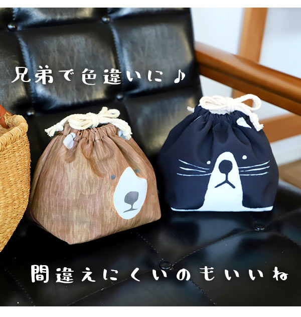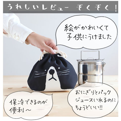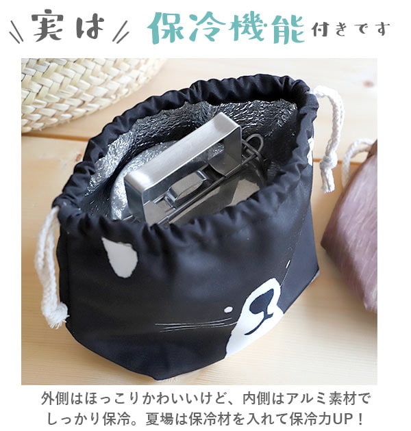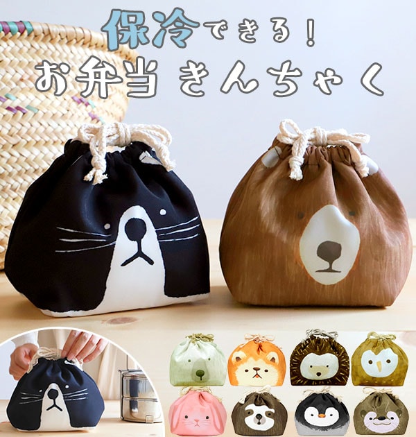 | 商品説明 | 包んでいるはずのごはんでお弁当を包むシュールでかわいい『おかずきんちゃく』お弁当を包むとキュートなどうぶつの顔が「こんにちは!」『おかおきんちゃく』内側はアルミシート仕様で、保冷剤と一緒に使えばひんやりキープ◎コンパクトながら2段のお弁当箱も入るしっかりサイズです。こんなにかわいい巾着ならお弁当作りも楽しくなるかも?? |