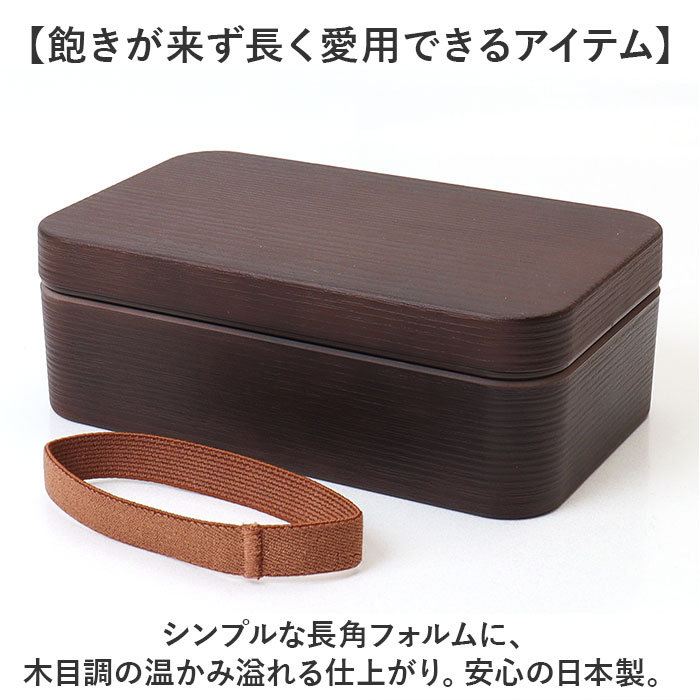 お米がくっつきにくい弁当箱 木目長角弁当L 800ml【ダークブラウン】