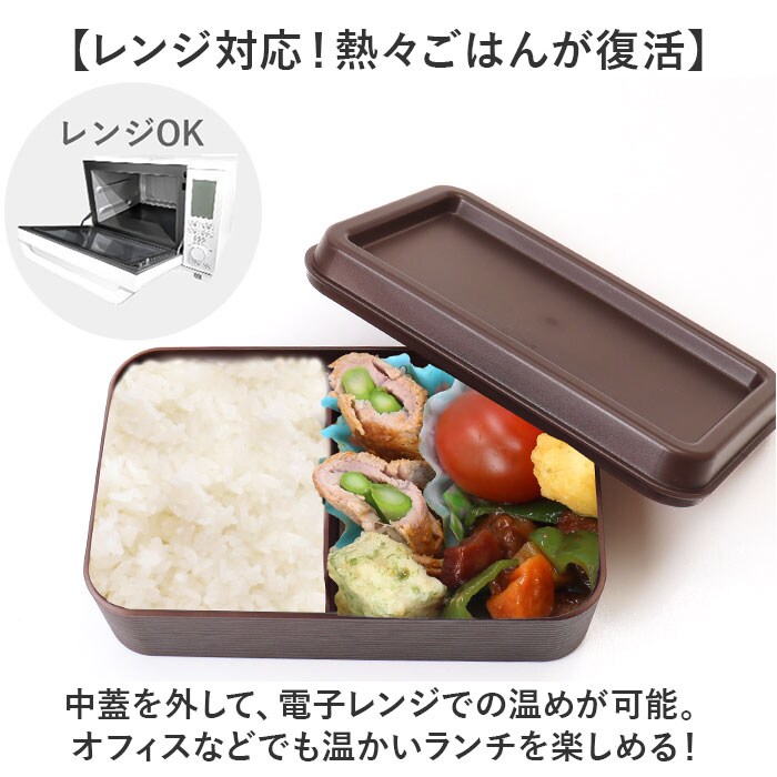 | 商品説明 | 【毎日のランチタイムのお供に】デイリー使いに最適。「お米がくっつきにくい弁当箱 木目長角弁当L 800ml」。【ごはんがくっつきにくい加工】本体に細かい木目の凹凸を施し、ごはんがくっつきにくい!ご飯粒を残すことなくキレイに完食◎【撥水効果で簡単拭き取り】水切れが良く、油汚れが付きにくいクリーンコート加工済み。サッと拭き取れるのが嬉しい!【男性も満足の容量800mlサイズ】片手で持ちやすく、屋外でのお食事にも便利な1段式。沢山食べる学生やパパにぴったり。【仕切りで盛り付けをキープ】おかずが片寄りにくい仕切り付き。お好みの位置にスライドでき、取り外しも自在。【ふわっと盛っておいしさアップ★】盛り上がった中蓋でおかずの押し潰れを防ぐ!時間が経っても見た目がキレイ!【レンジ対応!熱々ごはんが復活】中蓋を外して、電子レンジでの温めが可能。オフィスなどでも温かいランチを楽しめる!【食洗機が使えてお手入れラクラク】中蓋を除いて、食洗機の使用OK。お手入れしやすく、忙しい毎日の味方◎【しっかりホールドして汁漏れガード】ランチボックスをまとめるバンドが付属。中蓋とセットで汁漏れを防いで、持ち運びラクラク。(※)密閉タイプではありません。【飽きが来ず長く愛用できるアイテム】シンプルな長角フォルムに、木目調の温かみ溢れる仕上がり。安心の日本製。 |