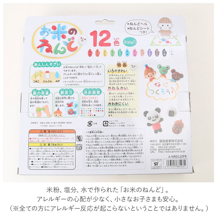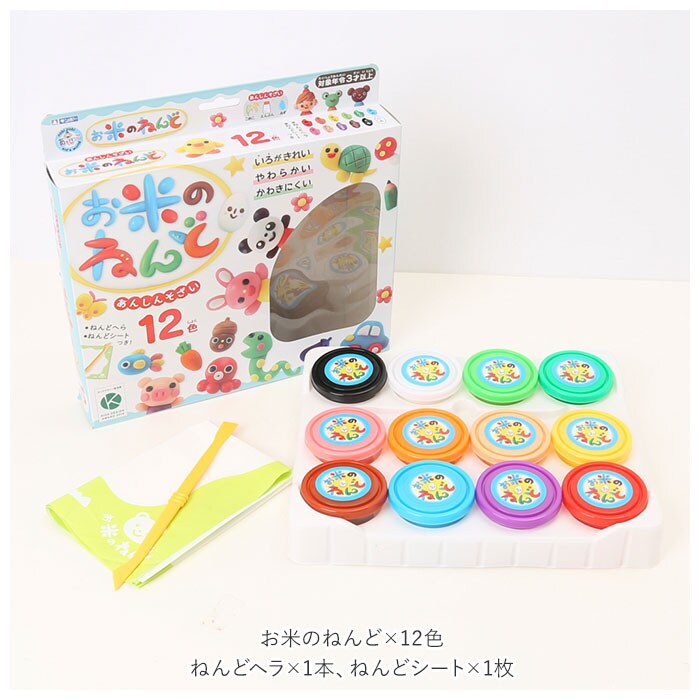 | 商品説明 | 色がキレイ、柔らかい、乾きにくい!安心素材で作られた「お米のねんど」12色セットが新登場。(対象年齢3歳以上)米粉、塩分、水で作られた「お米のねんど」。アレルギーの心配が少なく、小さなお子さまも安心。(※全ての方にアレルギー反応が起こらないということではありません。)カラフルでキレイな色が特長★色と色を自由に混ぜ合わせて、自分だけの色を作り出すことができちゃう!柔らかくもちもちとした感触!いつまでも触っていたくなるような心地よさもポイント。乾きにくい素材で、ゆっくり時間をかけて作品作りを楽しめるから、お子さまにぴったり。手や指先を使って楽しく遊びながら、自由な発想や工夫のチカラを育み、色彩感覚を身につけることができるアイテム。・【セット内容】お米のねんど×12色(あか・オレンジ・きいろ・みどり・エメラルド・あお・ピンク・ペールオレンジ・むらさき・ちゃいろ・くろ・しろ)、ねんどヘラ×1本、ねんどシート×1枚 |