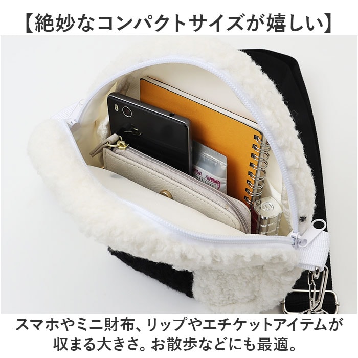 商品説明【小物をまとめて可愛く持ち歩き】コーデに遊び心をプラス☆ミニマルスタイルも叶う「ぎゅっとおにぎりさん ミニサコッシュ」。【疲れた人の前に現れるおにぎりさん】おにぎりのような見た目の生き物☆つぶらな瞳がたまらなく可愛い、おにぎり型サコッシュ。【両手が空いてストレスフリー】長さ調節可能なショルダーを取り付け、肩掛けや斜め掛け。アクティブシーンでも活躍♪【ガバっと開くダブルファスナー】左右どちらからもオープン。中身を確認しやすく、閉じればプライバシーを確保。【絶妙なコンパクトサイズが嬉しい】スマホやミニ財布、リップやエチケットアイテムが収まる大きさ。お散歩などにも最適。【ふんわり優しいもこもこ素材】手に取るたびに、温もりを感じる質感。柔らかな手触りが心地よく、秋冬コーデの相棒に!【みんなが笑顔になるデザインが魅力】おにぎりフォルムに、ぎゅっと抱きしめる小さな手が可愛い!心も思わずほっこり♪【ポケット仕様】内側:オープンポケット×1