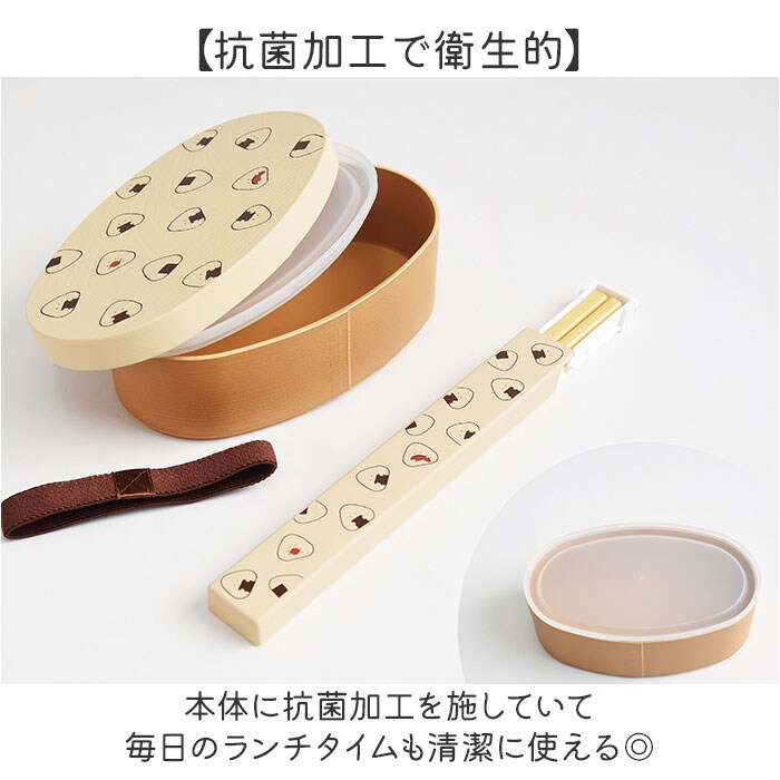 | 商品説明 | 【可愛くて実用的な弁当箱】抗菌加工でレンジも食洗機もOKな「ぎゅっとおにぎりさん 抗菌ランチBOX」。※お箸は別売りです。【抗菌加工で衛生的】本体に抗菌加工を施していて毎日のランチタイムも清潔に使える◎【シール蓋で汁漏れ防止】密閉性の高いシール蓋付きだから汁気の多いおかずも安心して持ち運び♪【レンジも食洗機もOK】中蓋を外せば電子レンジと食洗機に対応していて忙しい朝も後片付けも楽々!【わっぱ風のナチュラル感】木目調デザインが優しい雰囲気を演出〇【便利な留めゴム付き】ランチベルトが付属。バッグの中でもしっかり固定できる。【安心品質の日本製】国内生産による丁寧な仕上がりで子供から大人まで安心して使える〇 |