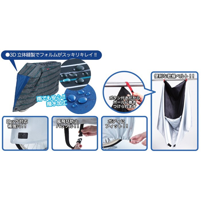 自転車カバー おおきめサイズ OB-PB12【グレイボーダー】