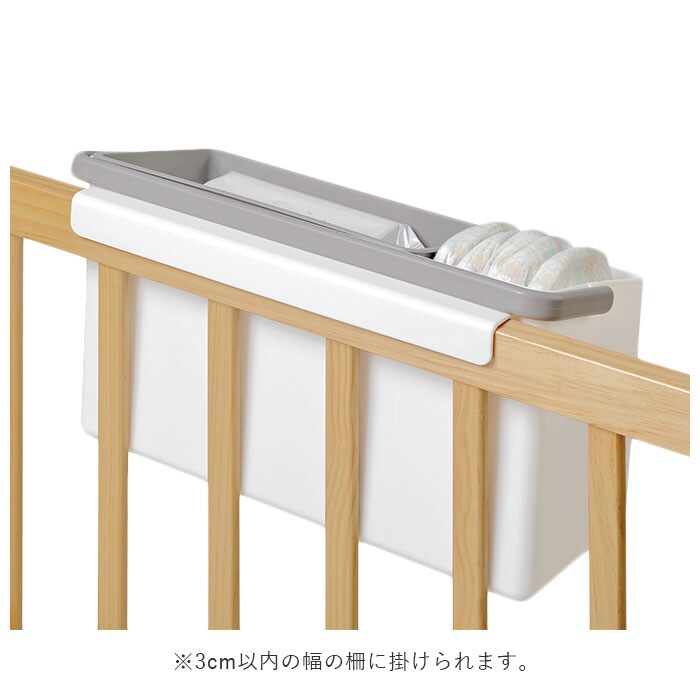 | 注意点 | 火のそばに近づけないでください。本製品に、寄りかかる・ぶらさがる・上に登る等の行為はしないでください。安全を確かめた上、安定感のある場所で使用してください。耐荷重の範囲内で使用してください。(耐荷重:3kg)掛けて使用する場合は、事故防止のためベッド内側に掛けないでください。ベッドの柵の太さやデザインにより、取り付けられない場合があります。貴重品・危険物は入れないでください。カメラやモニターの性質により、画像と実物の色の違いがある場合がございますのでご理解願います。 |