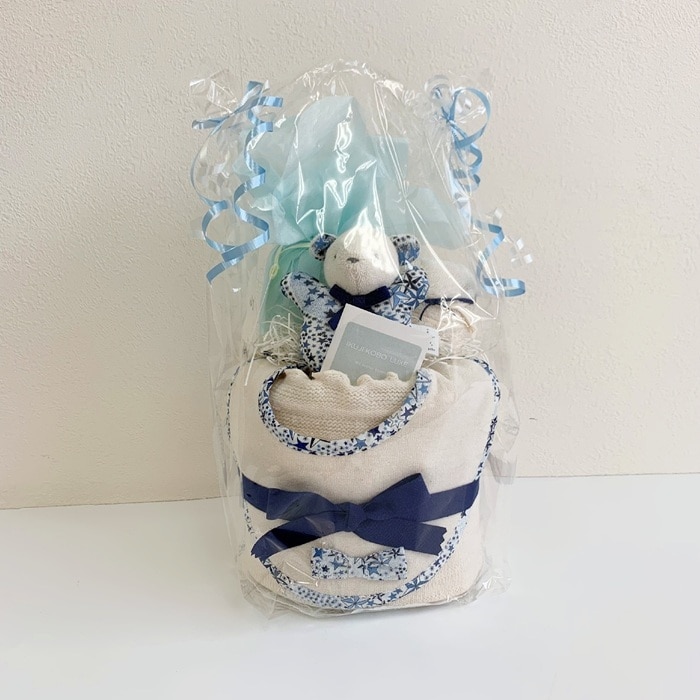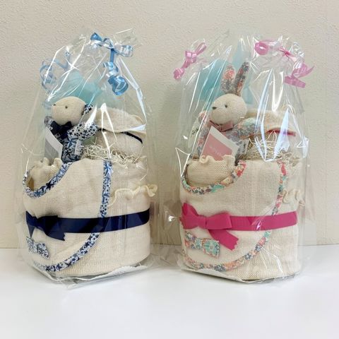 | 商品説明 | ベビーアイテムとして人気のアイテム4点を使用したおむつケーキ。人気のリバティプリントを使用することで、かわいらしさの中にも華やかさのあるアイテムとして人気。紙おむつはパンパースSサイズを使用。 |