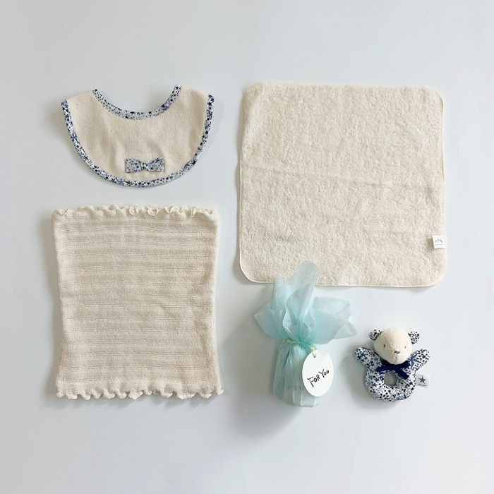 | 素材 | 【スタイ】綿100% 【にぎにぎ】表地:綿100%・中綿ポリエステル 【パイルハンカチ】綿100% 【腹巻】綿97%・ナイロン2%・ポリウレタン1% |