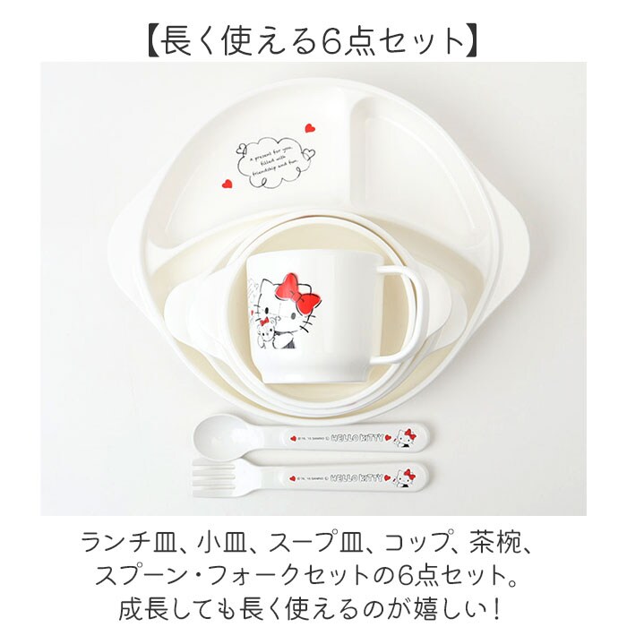 | 商品説明 | 【長く使える6点セット】ランチ皿、小皿、スープ皿、コップ、茶椀、スプーン・フォークセットの6点セット。成長しても長く使えるのが嬉しい!【深型でこぼれにくい】お皿やスープ皿は深さがあるから食べ物がこぼれにくく、フォークやスプーンですくいやすい〇【持ち手付き】取っ手が付いているから小さな手でも持ちやすく、自分で運ぶ練習にもぴったり!【お手入れ楽ちん】食洗機と電子レンジ対応だから、温め直しも後片付けもラクラクで忙しい日も安心◎(※耐熱温度140度。500W×2分以内)【安心の国内生産】BPAフリーで日本製。お子様に人気のキャラクター柄がかわいい!毎日の食卓が楽しくなるアイテム。【滑り止めで安心ランチプレート】3つのスペースに仕切られたランチ皿は、底面の足ゴムが食事中のズレを防ぐからお子様も使いやすい♪【ちょうどいいサイズの小皿】おやつや取り分けにぴったりな大きさだから、いろんなシーンで使いやすい〇【汁物に最適なスープ皿】スープやお味噌汁にぴったりの形状で程よい容量の300mlだから、毎日の食卓で大活躍♪【軽くて持ちやすい茶碗】子どもの一食分にちょうどいいサイズ感で、毎日のご飯タイムを快適にサポート◎【色んなシーンで活躍するコップ】取っ手が付いて手に持ちやすく、お子さまが飲みやすい程よい容量180ml。【便利なスプーン・フォークセット】約13cmの長さが小さな手にぴったりフィットして、食べる動作をしっかりサポート♪【スタッキング収納】コップ・茶碗・スープ皿・小皿・ランチ皿でスタッキング収納可能♪ |
