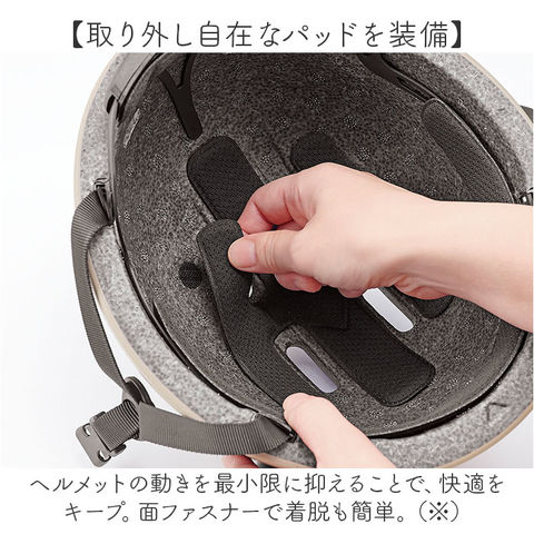 | 商品説明 | 【自転車に乗る時もおしゃれに】服装に合わせて帽子を着せ替え♪「おしゃヘルハイクハット」が新登場。【安全をおしゃれに守るヘルメット】安心安全なSG認証ヘルメットに帽子をON!自転車運転中もおしゃれを我慢しない♪《ヘルメット》【自分サイズに心地よくフィット】ダイヤル式のアジャスターバンドで調節でき、頭囲約54cm~約58cmに対応。【取り外し自在なパッドを装備】ヘルメットの動きを最小限に抑えることで、快適をキープ。面ファスナーで着脱も簡単。(※)通気孔を塞がないように取り付けてください。【ワンタッチ着脱できるあご紐】着脱がスムーズなバックル式。位置も長さもラクラク調節。《ハット》【爽やかで涼しげなストロー風ハット】春夏にぴったりなナチュラル感♪ふんわりとしたシルエットで、キレイめコーデにもマッチ。【上げ下げしやすいワイヤー入りツバ】つば先にワイヤーを内蔵。走行時はツバを上げることで、視界も良好◎【ドローコードでしっかり固定】帽子の中にヘルメットを入れ込んで覆い被せ、ドローコードをキュッ!吹き飛ばされにくく安心。【暗闇での視認性をアップ】背面には、暗闇でヘッドライトの光を反射するリフレクター付き。【嬉しいUVカット機能付き】UVカット機能も付いており、気になる日差しをガード。熱中症対策にも。【熱がこもりにくくムレを軽減】内側は通気性の良いメッシュ仕様。汗ばむ季節もムレにくいつくり。【手洗いできていつも清潔をキープ】汚れや汗が気になったら、自宅で手洗いできて衛生的。ガシガシ使ってすっきり洗浄。 |