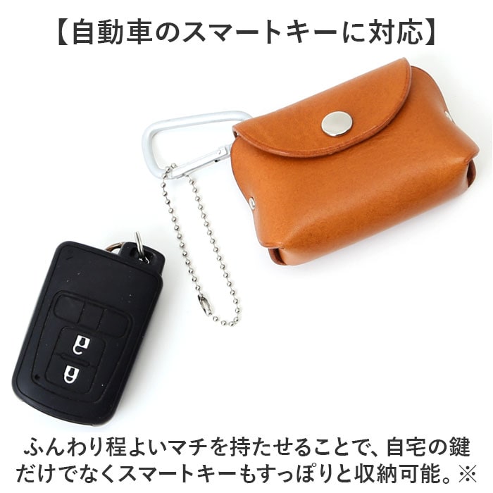 | 商品説明 | 【素材が際立つシンプルデザイン】すれ違う人にもひと目で分かる贅沢な本革の素材感。「R.C.L 牛革キーケース」が新登場!【ちょこんと可愛い手のひらサイズ】天然牛革をシームレスに折り込み、コロンと丸い手のひらサイズに仕上げたミニ・レザーケース。【スナップボタンで簡単開閉】パチンッと閉まるスナップボタン式のフラップで、鍵や小物が飛び出さず、取り出しもスムーズ。【自動車のスマートキーに対応】ふんわり程よいマチを持たせることで、自宅の鍵だけでなくスマートキーもすっぽりと収納可能。※お手持ちのスマートキーのサイズを事前によくご確認ください。【ボールチェーンで落下や紛失防止】鍵やスマートキーをボールチェーンにつないでおけば、うっかり落としてしまう心配がなく安心。【カラビナで持ち運びスマート】付属のカラビナで、バッグのハンドルやパンツのベルトループに取り付けて持ち運びも楽ちん!【こだわりの天然皮革を使用】植物タンニンで鞣し上げた国産牛革にオイルを染み込ませ、ソフトな風合いと上品な艶感を実現。肌身離さず持ち歩くものだからこそ、上質にこだわりたい・・・。そんな方にオススメのアイテム。【軽い水濡れでも安心、弱はっ水性】オイルを染みこませたシュリンク加工により、手汗など軽い水濡れに強いのも嬉しいポイント。【使うほどに深まる味わい】使い込むほどに手のひらに馴染み、美しい経年変化が楽しめるのも魅力の一つ。安心の日本製品。【プチギフトにも最適】日頃お世話になっている大切な方へのギフトや、新社会人になられる方への贈り物にぴったり! |