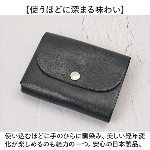 | 商品説明 | 【素材が際立つシンプルデザイン】すれ違う人にもひと目で分かる贅沢な本革の素材感。「R.C.L コンパクトウォレット」が新登場!【縫い目のないユニークなお財布】天然皮革を包み込むように折り込み、ステッチをせずにリベット留めのみで仕上げたシームレス仕様。【コロンと可愛い手のひらサイズ】ぽってり丸みのあるフォルムと滑らかな感触が手のひらに馴染む、ミニマル派に嬉しいサイズ感。【スナップボタンで簡単開閉】パチンと閉まるスナップ式の2重フラップで、外出中に小銭やカードが飛び出す心配のない安心構造。【収納上手になれる2ポケット仕様】前後2つに分かれたポケットで、コインやお札、カード類をスマートに仕分け、誰でも収納上手に。【キャッシュレス派にもオススメ】どちらのポケットもふわっとマチを持たせ、折り畳んだ紙幣や7~8枚のカードがゆったり収納可能。【こだわりの天然皮革を使用】植物タンニンで鞣し上げた国産牛革にオイルを染み込ませ、ソフトな風合いと上品な艶感を実現。【使うほどに深まる味わい】使い込むほどに手のひらに馴染み、美しい経年変化が楽しめるのも魅力の一つ。安心の日本製品。【男性も持ちやすいシンプルカラー】ON・OFFどちらのスタイルにもすっきり馴染む、落ち着きのあるベーシックカラーのバリエーション。【上質を求める大人の小物使い】肌身離さず持ち歩くものだからこそ上質にこだわりたい・・・。そんな大人の男女にお勧めのアイテム。 |