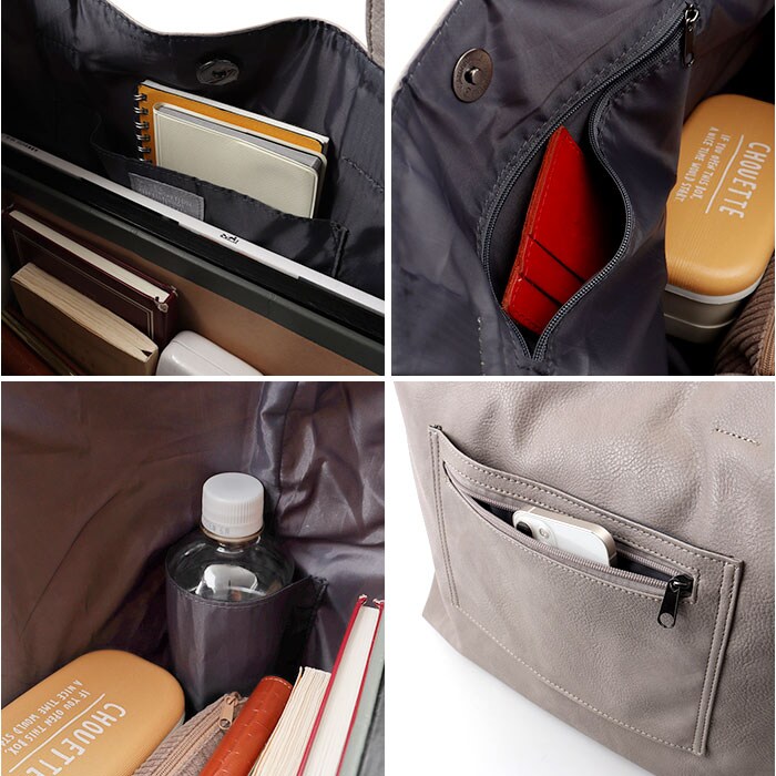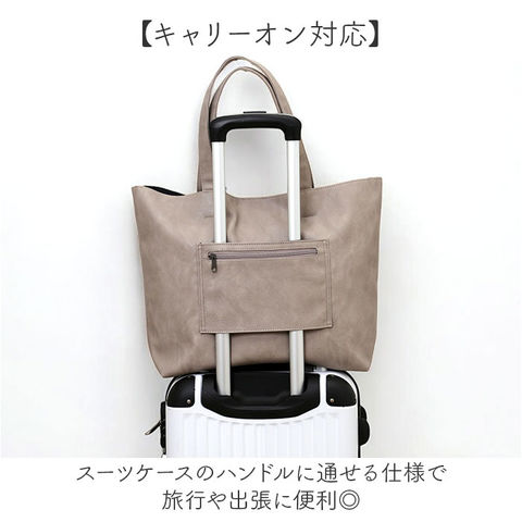 | 商品説明 | 【様々なシーンで活躍】上品な質感が魅力、大容量のムラしぼ合皮トートバッグ。【たっぷり大容量】A4サイズもラクラク収納できる、大きめサイズで通勤に最適♪【マグネット開閉式】ワンタッチで開け閉めできるマグネット式で使い勝手抜群。【キャリーオン対応】スーツケースのハンドルに通せる仕様で旅行や出張に便利◎【ムラしぼ合皮の質感】上品なムラしぼ加工の合皮素材で高級感のあるデザイン〇 |