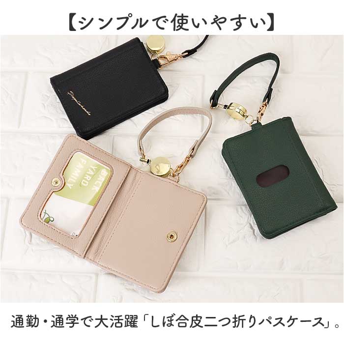 | 商品説明 | 【シンプルで使いやすい】通勤・通学で大活躍「しぼ合皮二つ折りパスケース」。【高級感を演出】シボ感のある合皮の質感が手に馴染みやすく持ちやすい。【二つ折り仕様】外側、内側どちらにもカード収納ポケットを2つ装備。【持ち運び自由】ナスカン付きのストラップを使えばバッグに取り付けて持ち歩ける◎【伸びるリール付き】バッグの持ち手に取り付けたまま改札タッチ可能♪ |