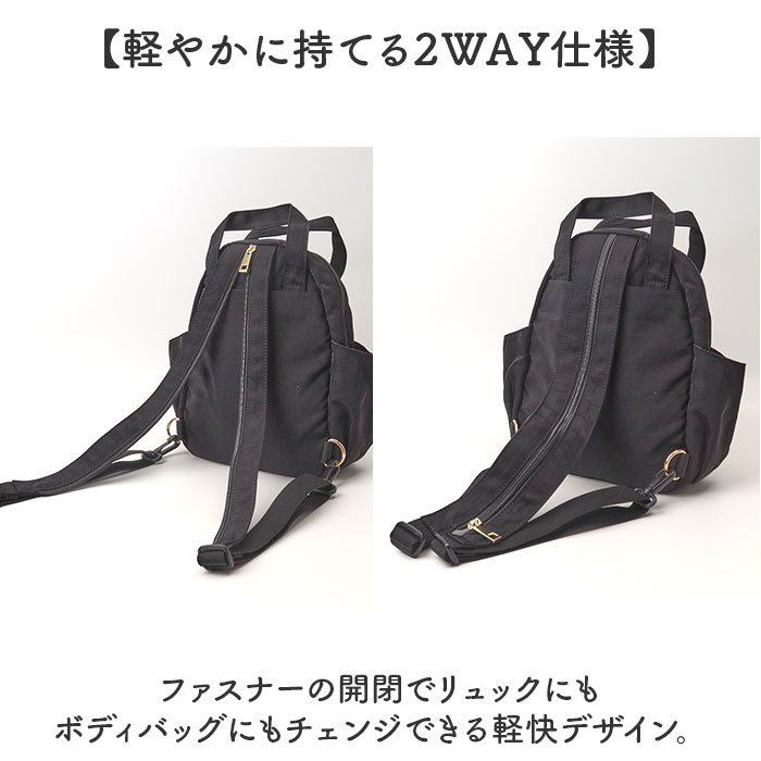 しわナイロン2WAYミニリュック&ボディ【BE】