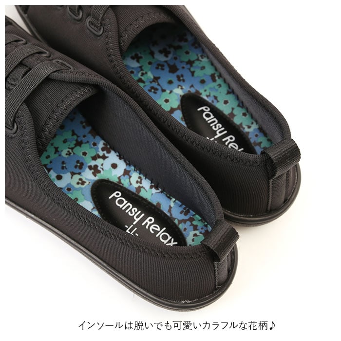 | 商品説明 | 軽くて歩きやすさが魅力的なブランド「Pansy(パンジー)」からストレスフリーのレディースリラックスシューズが登場。アッパーはストレッチ素材を使用し、足の動きにフィットし痛くなりにくいのが嬉しいポイント!片足約111g(※Mサイズ(23-23.5cm)の重量です)ととっても軽く毎日履きたくなる履き心地♪アウトソールは軽量&屈伸性に優れた設計で柔軟に曲がり、疲れにくいのも魅力的!近所の散歩や街歩き、買い物まで幅広いシーンで活躍。ソフトなウレタンインソールは脱いでも可愛いカラフルな花柄がアクセントに。 |