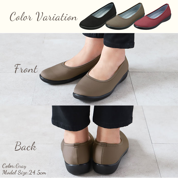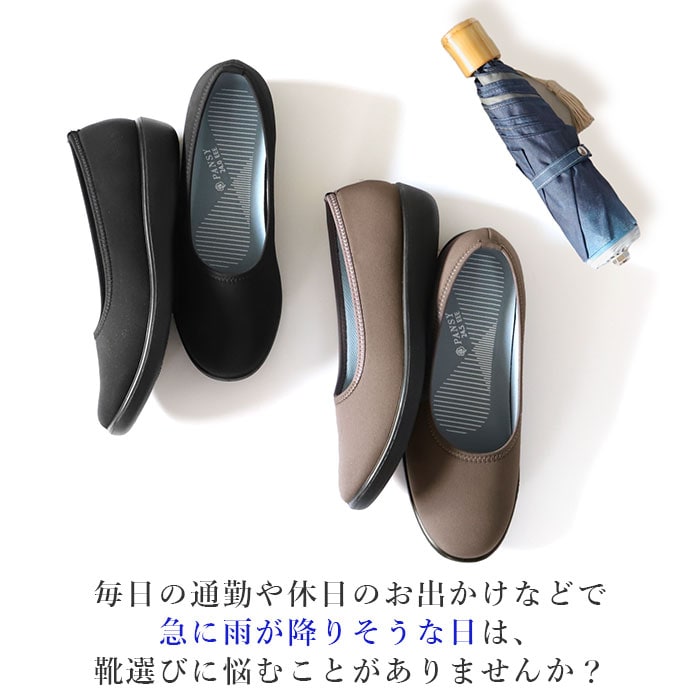 | 商品説明 | ソフトなニット生地のアッパー素材でしなやかな履き心地!Pansyのレインステップ防水シューズ。アッパーのニット生地には、水をしっかりはじくはっ水加工生地を採用。足元を気にせずお出かけが楽しめる生活防水設計。ソールとアッパー素材との接合部にすき間の無いダイレクトソーリング製法で、密閉性が高く水が浸入しにくい構造。突然の雨でも足元しっかりガード!履き口が広く、サッと履けて歩きやすいパンプスタイプ。立体的な形状のカップインソールが足に程よくフィットして、長時間履いても疲れにくい♪サラッと肌触りのよいカップインソールは取り外しが可能!安全性の高い抗菌防臭加工済みで、いつでも清潔に履ける。アウトソール底面には2ヶ所のゴム素材で地面をしっかりグリップ!雨の日の濡れた路面でも滑りにくく安心。カジュアルスタイルでリラックスして過ごす時も、キレイめスタイルに合わせる時にもコーディネートしやすいすっきりとしたシンプルなフォルムも魅力的。 |