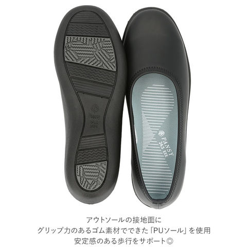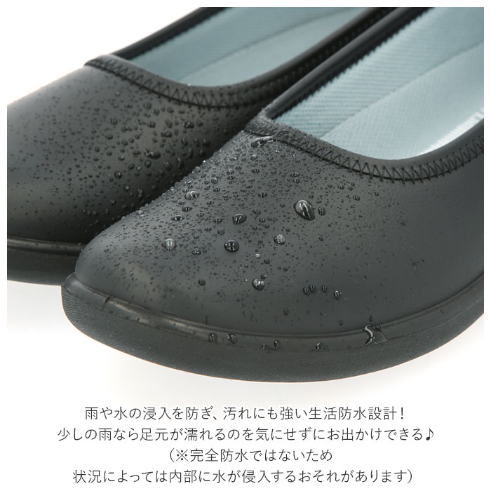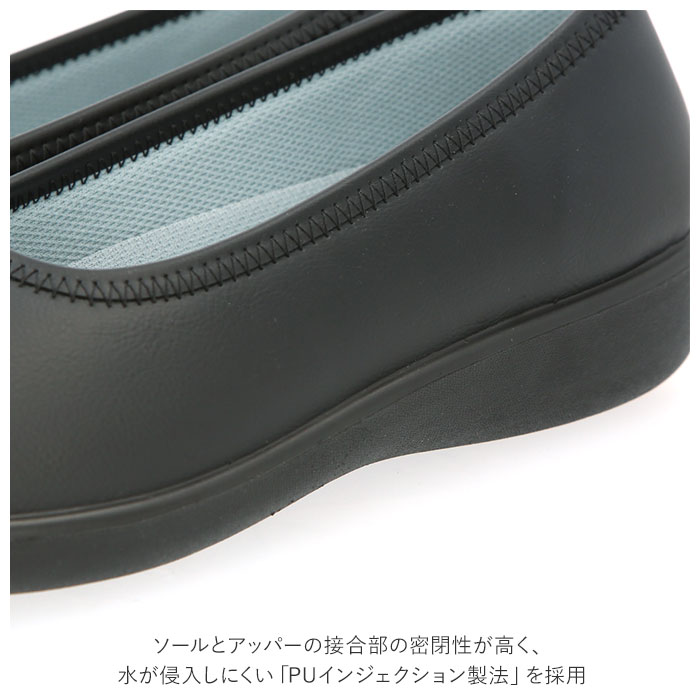 | 商品説明 | 晴れの日も雨の日も履ける!全天候型のオフィスパンプスが発売。雨や水の浸入を防ぎ、汚れにも強い生活防水設計!少しの雨なら、足元が濡れるのを気にせずにお出かけできる♪(※完全防水ではないため、状況によっては内部に水が侵入するおそれがあります。)ソールとアッパーの接合部の密閉性が高く、水が侵入しにくい「PUインジェクション製法」を採用。屈曲性とクッション性に優れ、歩きやすい設計。立体形状のカップインソールが足に優しくフィット!抗菌・防臭加工を施したサラッとした肌触りで、取り外しも可能。アウトソールの接地面に、グリップ力のあるゴム素材でできた「PUソール」を使用し、安定感のある歩行をサポート◎見た目は普通のパンプスだから、お天気の崩れが気になる時にもぴったり♪オフィスでも馴染みやすいシンプルなデザインと、機能性の高さが魅力。 |