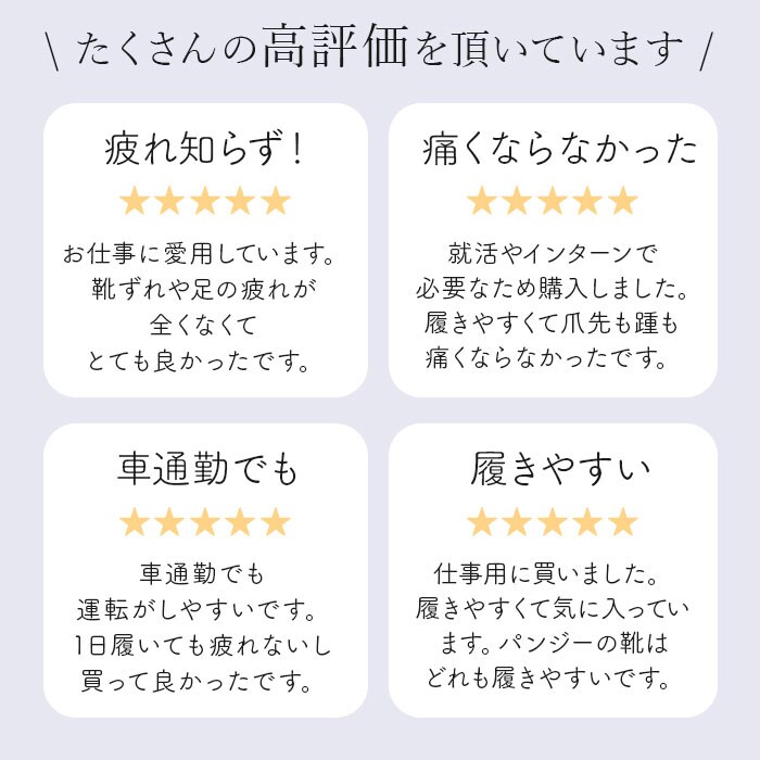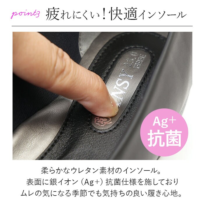 | 商品説明 | 軽くて歩きやすさが魅力的なブランド「Pansy(パンジー)」から、ゆったり幅広設計が嬉しいオフィスパンプスが登場。楽チンだけど綺麗な足元に!パンジー独自のストレッチ合皮を使用した快適パンプス。4センチヒールで足元すっきりキレイ魅せ。パンプス特有の締め付け感が苦手な方でもストレスなく履ける幅広の4E設計!インソールには長時間歩いても疲れにくい、柔らかなウレタン素材を使用。さらに中敷表面層に銀イオン(Ag+)抗菌剤を練り込み、いつでも清潔で気持ちの良い履き心地。耐摩耗性、クッション性に優れたEVA素材のアウトソール。グリップ力もあり、安定感のある歩行を実現。無地のブラックカラーなので、普段使いはもちろん、ビジネスやフォーマルシーンにも使える。 |