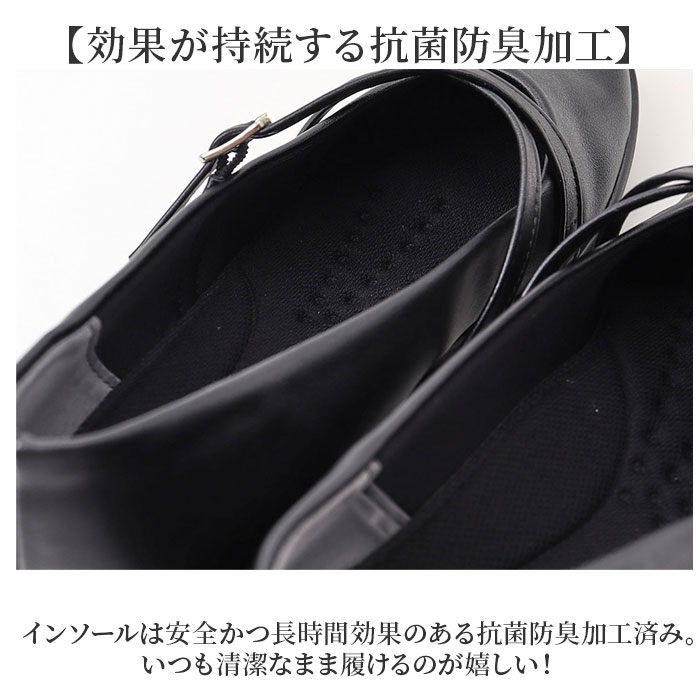 | 商品説明 | 【ビジネスから冠婚葬祭まで活躍】優美なクロスバンドで華を添え、あらゆるシーンで重宝。Pansy Office シューズ。【1日中歩き回っても足元軽やか】アッパー部分は、伸縮性のあるストレッチ合皮素材。足の動きにフィットし、疲れを軽減。【安定感があり、脱ぎ履きもスムーズ】脱げにくいクロスバンドデザイン。ストラップ内側にゴム素材を使い、脱ぎ履きラクラク。【優しく包み込んで衝撃から守る】U字型アーチクッションがかかとに馴染み、足裏にかかる衝撃を緩和。程よいふんわり感◎【効果が持続する抗菌防臭加工】インソールは安全かつ長時間効果のある抗菌防臭加工済み。いつも清潔なまま履けるのが嬉しい!【屈曲性があり歩きやすさが向上】つま先部分は、足の動きに合わせて柔軟に曲がる形状。蹴り上げやすくつまずきにくい◎【軽量性と防滑性を両立したソール】軽量設計のEVAコンプレッションソール。接地面にはグリップ力に優れたゴム素材をプラス。【年代問わず使いやすいシューズ】国内工場で生産された、安心の日本製。飽きが来ず、長く愛用できるアイテム。 |