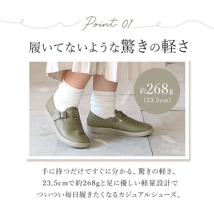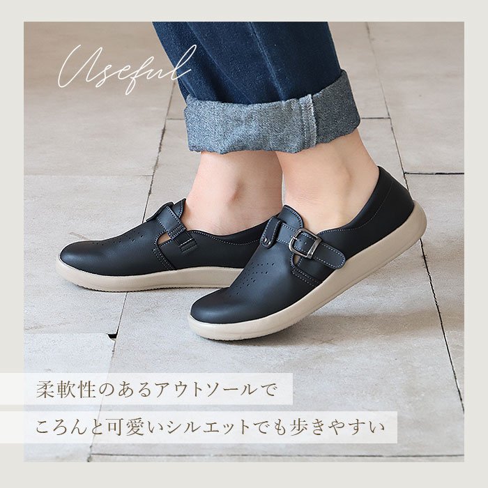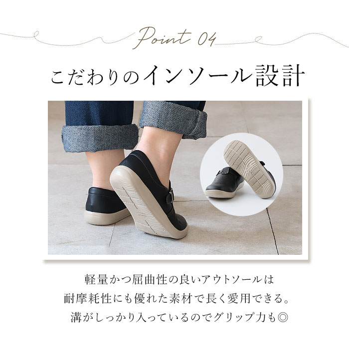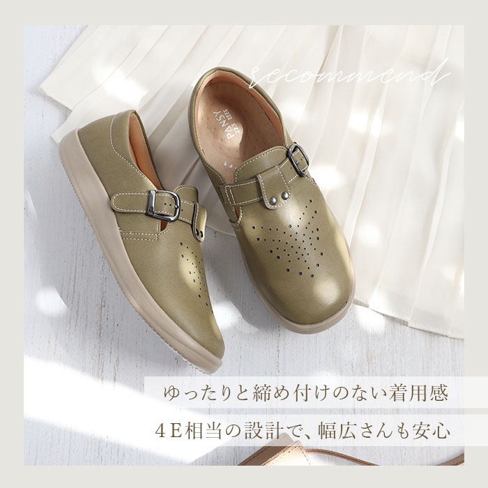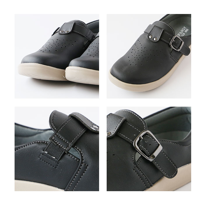 | 商品説明 | 軽量で足に優しく、歩きやすさを追求したブランド「Pansy(パンジー)」からカジュアルシューズが登場。ゆったりと締め付け感なく履けるのが嬉しい、幅広の4E設計♪甲部分のベルトで、お好みのフィット感に調節可能。土踏まず部分を広く支え、足の疲れを軽減してくれるカップインソールは、取り外しが可能だからお手入れがラクチン。さらに抗菌防臭加工済みで、いつも清潔!アウトソールは軽量かつ屈曲性があり、耐摩耗性にも優れている素材を使用。シンプルで使いやすく、女性らしい丸みのあるデザイン。通気性もあり、オールシーズン履けるのも嬉しいポイント。 |