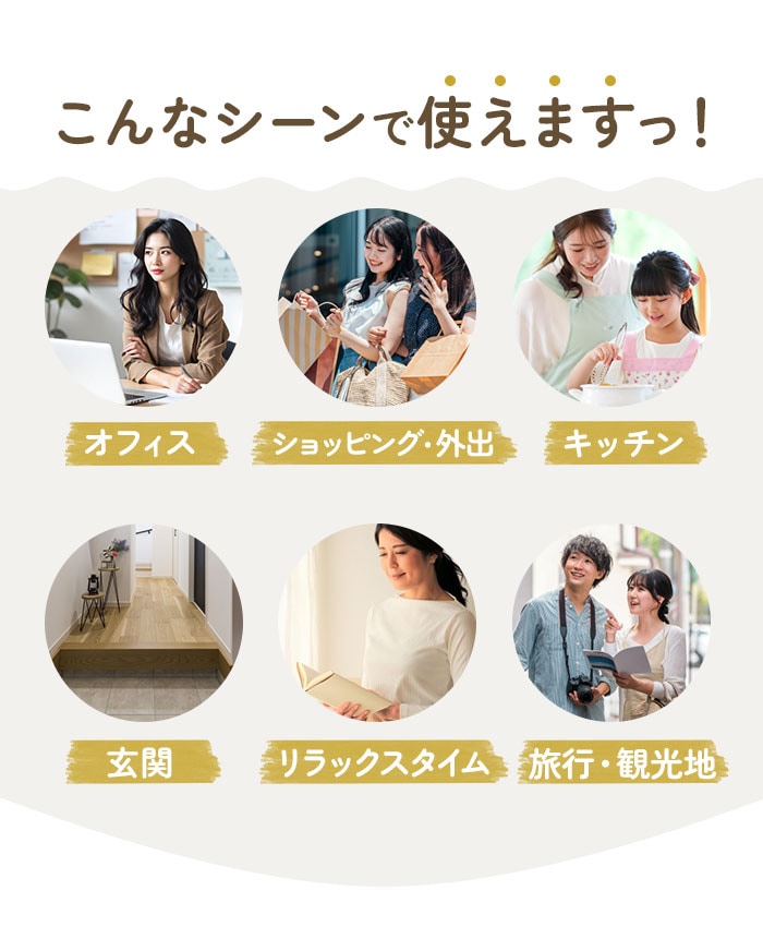 | 注意点 | この製品を雨の日や水に濡れた路面・床面でご使用の場合は、スリップや転倒の危険があります。歩行の際には十分ご注意ください。雨の日は屋外の路面だけでなく、あらゆる場所が水濡れにより滑りやすくなっており、転倒の危険がありますので、歩行の際には十分ご注意ください。最近、公共施設では床に滑り止め加工を施している所があります。滑り難い長所はありますが、反対につんのめる、つまずいて転倒する等の恐れがありますので、歩行の際には十分ご注意ください。防水加工はしておりませんので、水分がしみることがあります。水や油のある場所での使用は滑りやすくなりますのでご注意ください。使用素材が変質する場合がありますので、洗濯は避けてください。ポリウレタンの甲皮や靴底は、湿気により経年変化が生じ破損する場合があります。長期保存した後には、よく確認してからご使用ください。水や汗などにより濡れた状態で使用されますと、染色部分が色落ちする場合があります。[取扱い上の注意]甲皮の汚れを取るためには、消しゴムタイプのクリーナー等で軽く擦るか、ぬるま湯で絞った布で輪染みにならないように叩いて拭きます。火のそばに置くと、軟化または変形することがあります。乾燥する時は、陰干しにしてください。油をひいてある場所での使用はなるべく避けてください。 |