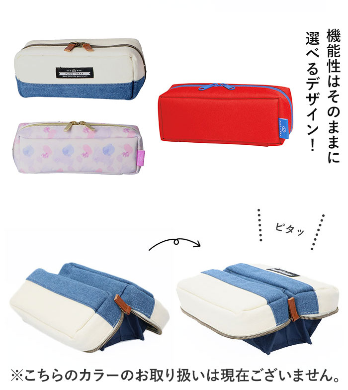 | 商品説明 | パカッと大きく開いて、鉛筆や消しゴムの取り出しが簡単!パコトレーペンケース。ファスナーを閉じた状態では、ごく普通の長方形のポーチ型ペンケース。ファスナーを開けると、中央のルームが持ち上がり、3つのトレーに分かれる画期的なつくり!ポーチ底部に内蔵されたマグネットの磁力で、ファスナーを全開にすると底部同士がくっつき、開いたままの状態をキープ!中のステーショナリーが見渡せて、取り出しやすい♪スチール製のデスクには内蔵マグネットでぴったりくっつく!デスクからペンケースを落とす心配なし!ポーチ型のペンケースでは取り出しにくかった、小さくなった消しゴムやクリップ、付箋など小さな物もすぐに取り出せる!マチが大きく、普通のペンケースには収納できない定規やはさみも収納可能。フェイクレザー+ゴールドファスナーがエレガントな「シャーベット」シリーズ、ナチュラルなキャンバス素材+レザー調ファスナースライダーを使用した「デニム」シリーズの2タイプをラインナップ!学生さんだけでなく、オフィスでも使いやすい洗練されたデザイン♪※「シャーベットシリーズ」(27106シャーベットピンク27107シャーベットミント27108シャーベットパープル)と「デニム」シリーズ(26610ブラックデニム26611デニム26612ヒッコリー)では、商品サイズ容量が異なります。 |