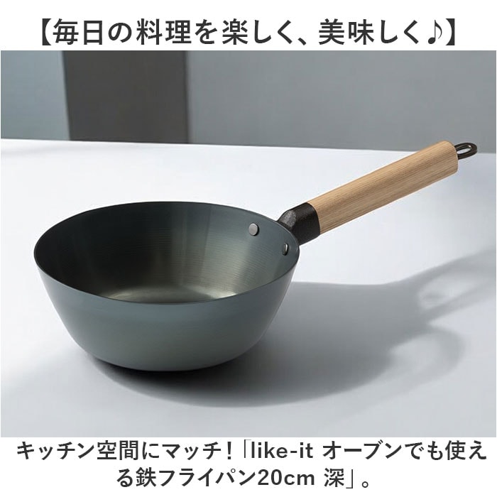 like-it オーブンでも使える鉄フライパン20cm 深【ブラック】