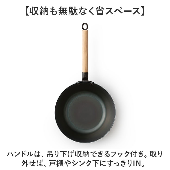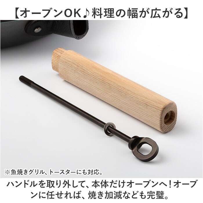 | 商品説明 | 【毎日の料理を楽しく、美味しく♪】キッチン空間にマッチ!「like-it オーブンでも使える鉄フライパン20cm 深」。【丁寧に育てていける鉄フライパン】熱伝導性と蓄熱性に優れ、食材の旨みを引き出す!使うほどに油が馴染んで使いやすさも向上。【おかず調理にぴったりな深型タイプ】小ぶりながら程よい深さに設計。野菜炒めや煮込み料理、少ない油での揚げ物調理におすすめ☆【包丁のように握れるハンドル】ナチュラルな天然木素材&握りやすい楕円形。重たい鉄フライパンも扱いやすくデイリーに活躍◎【オーブンOK♪料理の幅が広がる】ハンドルを取り外して、本体だけオーブンへ!オーブンに任せれば、焼き加減なども完璧。(※)魚焼きグリル、トースターにも対応。【お手入れも簡単ハードテンパー加工】使い始めでも油馴染が良く、焦げ付きやサビが発生しにくい焼入れ加工済み。【嬉しいガス火・IH兼用アイテム】一般的なガスコンロとIHコンロに対応。引っ越し時の買い替えが不要なのも嬉しいポイント。【収納も無駄なく省スペース】ハンドルは、吊り下げ収納できるフック付き。取り外せば、戸棚やシンク下にすっきりIN。 |