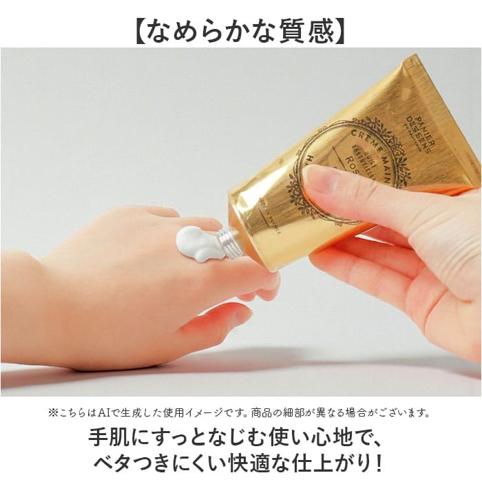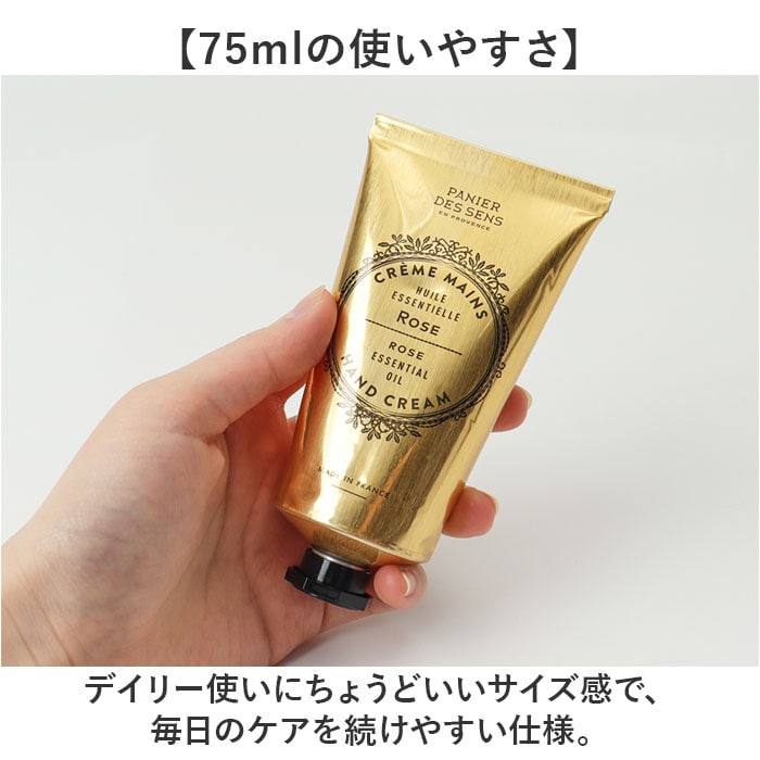 | 商品説明 | 【フランス生まれの香り】こだわりが詰まった本格派「パニエデサンスハンドクリーム」♪【しっとり使用感】手肌になじむテクスチャーで、デイリーのハンドケアをサポートする一品◎【心地よい香り立ち】フランス生まれの上質な香りで、使うたびに癒しのひとときを演出♪【75mlの使いやすさ】デイリー使いにちょうどいいサイズ感で、毎日のケアを続けやすい仕様。【なめらかな質感】手肌にすっとなじむ使い心地で、ベタつきにくい快適な仕上がり! |