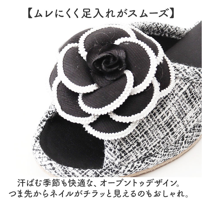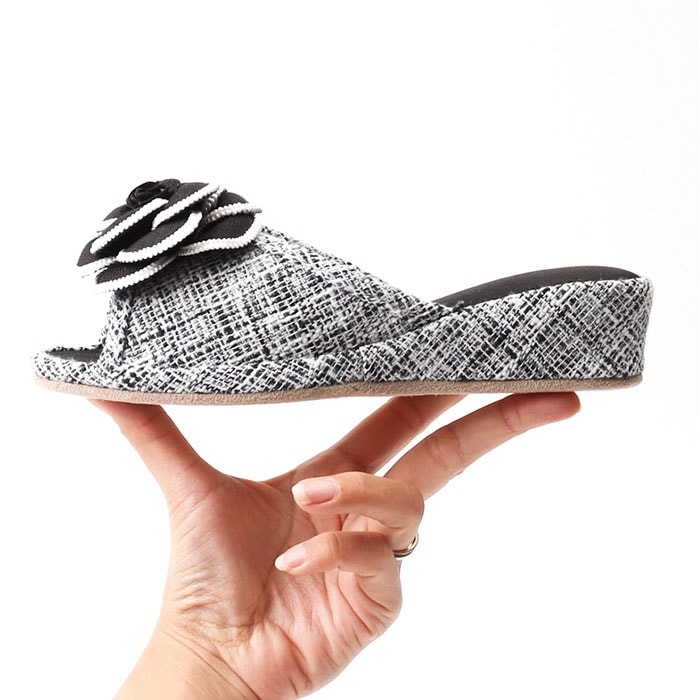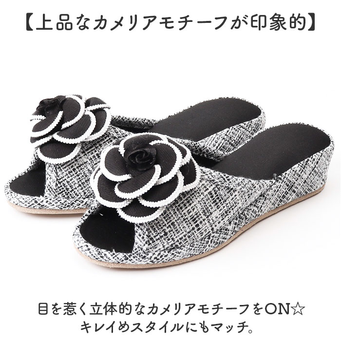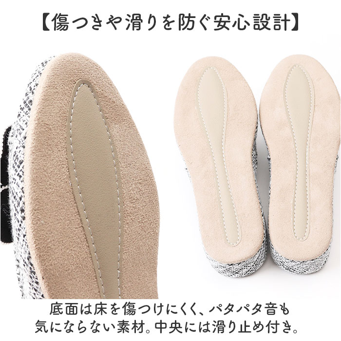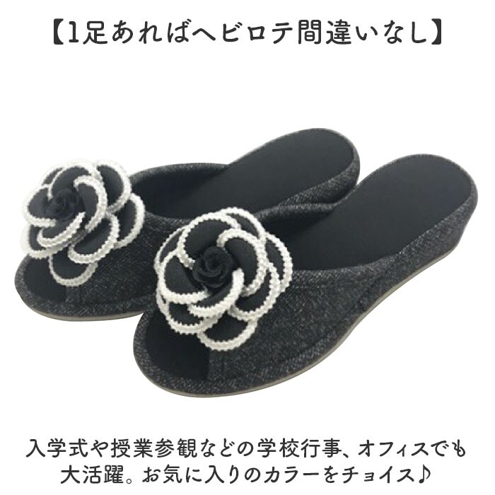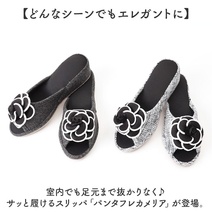 | 商品説明 | 【どんなシーンでもエレガントに】室内でも足元まで抜かりなく♪サッと履けるスリッパ「パンタフレカメリア」が登場。【上品なカメリアモチーフが印象的】目を惹く立体的なカメリアモチーフをON☆キレイめスタイルにもマッチ。【ムレにくく足入れがスムーズ】汗ばむ季節も快適な、オープントゥデザイン。つま先からネイルがチラッと見えるのもおしゃれ。【ヒールで足元すらりキレイ魅せ】約4cmのヒールで、自然なスタイルアップが叶う♪足にかかる負担も軽減。【衝撃を吸収する程よいクッション性】かかとにはソフトなクッションを内蔵。ヒールの傾斜も緩やかで、ノンストレス◎【傷つきや滑りを防ぐ安心設計】底面は床を傷つけにくく、パタパタ音も気にならない素材。中央には滑り止め付き。【1足あればヘビロテ間違いなし】入学式や授業参観などの学校行事、オフィスでも大活躍。お気に入りのカラーをチョイス♪ |