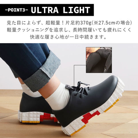| 商品説明 | 晴れの日も雨の日も「歩く」を楽しく!ccilu(チル)の 「PANTOO RIAO/RIOO」ブロックを組み合わせた立体感のあるソールがインパクト抜群。ソールの素材に、cciluが独自開発した合成樹脂ccilucell(チルセル)を使用し、歩行時の衝撃を効果的に吸収。ccilucellは高い抗菌・防臭機能も併せ持っているため、いつも衛生的。ユニークなブロックソールは厚さ4.5cmのヒールで脚長効果にも期待◎耐水性に優れたアッパーで、雨の日もアクティブに。インナーはサラっと快適なウェットスーツ素材。かかとのプルストラップで、脱ぎ履きがとってもスムーズ。クッション性に優れた快適な履き心地が持続し、長時間履いても疲れにくい!レインシューズとしてはもちろん、晴れの日もお洒落に履きこなせる遊び心あふれるデザイン。23cmから28.5cmまで、幅広くサイズを取り揃えたユニセックス仕様。「ccilu(チル)」とは・・・アマゾンの奥地で「緑の勝利」を意味する言葉。アマゾンで暮らす人たちが履いている草のサンダルから着想を得て造られた、素足の感覚に限りなく近づけた新感覚シューズ。 |