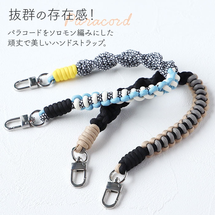 | 商品説明 | 【抜群の存在感!】パラコードをソロモン編みにしたおしゃれと機能性を兼ね備えたハンドストラップが登場。【美しい色合い】編み込まれたパラコードのカラーコンビネーションが美しいストラップ。【丁寧なつくり】ひとつひとつ丁寧に編み込まれたハンドメイドなので耐久性も◎【簡単着脱!】スマホとスマホケースの間に付属のプレートを入れ、スマホ端末をセットすればOK!(※)スマホケースの形状などにより、取り付けできない場合がございます。【落下防止、紛失防止に】手首に掛けて使えばスマホの落下防止や紛失防止にも役立つアイテム。【バッグや小物マルチに使える♪】ナスカンが付いているので、お手持ちのカードケースなどに付け替えれば気軽にイメージチェンジ! |
