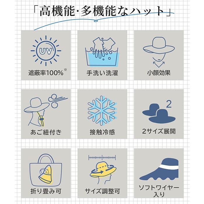 | 商品説明 | 【日差しの強い季節も怖くない!】日焼けや熱中症対策に◎夏のお出かけの必需品「swell 遮光カジュアルハット」。【お肌も髪もしっかり守る完全遮光】完全遮光日傘の生地を採用!遮光率・UVカット率100%、近赤外線遮蔽率99.9%以上。【日傘感覚で使える便利なハット】遮熱効果にも優れ、ツバの内側はブラック生地で照り返しを防ぐ!日傘が使えないシーンでも重宝。(※1)約18度温度上昇を抑える効果があります。【熱中症対策にも役立つアイテム】頭に触れる部分に、メッシュ接触冷感生地を使用。暑さを和らげ、サラッとひんやり◎【日焼け対策だけではないこだわり】頭からうなじまで、すっぽり隠れる大きめサイズ。お顔周りもすっきりキレイ魅せ♪【見た目も触り心地の良さも両立】シワになりにくいこだわりの素材。ファッション性も兼ね備えたモダンな仕上がり。【自分サイズに心地よくフィット】内側の面ファスナーテープでサイズ調節可能。お好みのサイズ感で被れる、2サイズをご用意!(※2)ツバの長さや高さは、2サイズ共通です。【自在にアレンジ&型崩れもガード】ソフトワイヤー入りでお好みの形にでき、バッグインした際もフォルムをキープ。視界も確保◎(※3)折りたたんでバッグに収納可能です。【風の強い日や自転車移動も大丈夫】取り外し可能なあご紐付き。ドローコードで調節でき、吹き飛ばされることなく迷子知らず。【お手入れラクラク!衛生的】汚れや汗が気になったら、自宅で手洗い可能。いつも清潔をキープできるのもポイント。【お気に入りを選べるカラー】肌馴染みが良く、コーデにも合わせやすいベーシックカラー。デイリーに大活躍☆ |