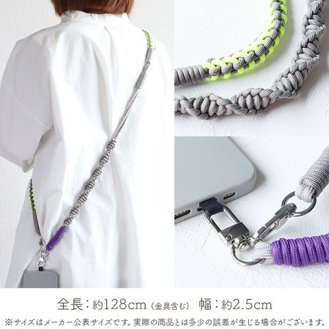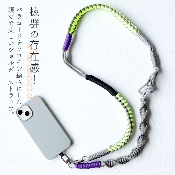 | 商品説明 | 【抜群の存在感!】パラコードをソロモン編みにしたおしゃれと機能性を兼ね備えたショルダーストラップが登場。【美しい色合い】編み込まれたパラコードのカラーコンビネーションが美しいストラップ。【丁寧なつくり】ひとつひとつ丁寧に編み込まれたハンドメイドなので耐久性も◎【簡単着脱!】スマホとスマホケースの間に付属のプレートを入れ、スマホ端末をセットすればOK!(※)スマホケースの形状などにより、取り付けできない場合がございます。【落下防止、紛失防止に】スマホの落下防止や紛失防止にも役立つアイテム。サッと肩掛けできて両手がフリーに!【バッグや小物マルチに使える♪】ナスカンが付いているので、お手持ちのバッグにストラップを付け替えれば気軽にイメージチェンジ! |