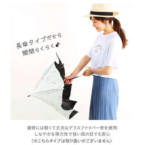 | 素材 | [傘生地の組成]ポリエステル100% [手元ハンドル] ・910013ストライプシリーズ:合板 ・910014セーラーシリーズ:フェイクレザー ・910016チェリーシリーズ:フェイクレザー ・910017バーズシリーズ:合板 ・910019フラワーシリーズ:合板 ・910020ブラックドット・ブラックボーダー:フェイクレザー ※手元ハンドルの素材・カラーは、柄により異なります。予めご了承ください。 |