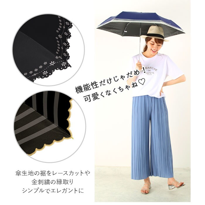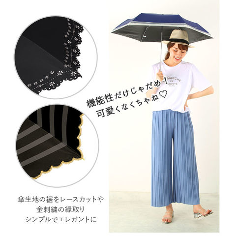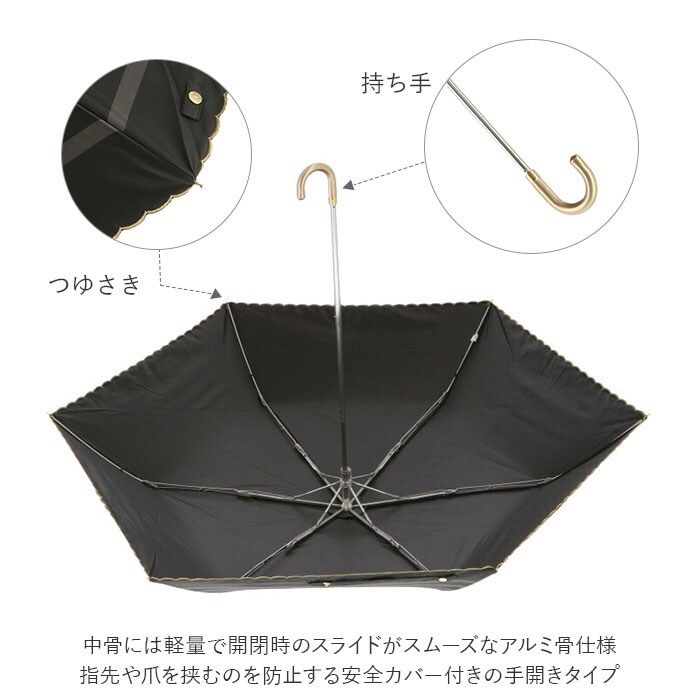 | 商品説明 | 紫外線から肌を守りたい女性の強い味方!完全遮光Parasol(パラソル)晴雨兼用折りたたみ傘。親骨50cmタイプ。中骨は軽量で開閉時のスライドがスムーズなアルミ骨仕様。通勤用トートに入れておいても気にならない重さ。遮光率100%の生地を使用し、高い遮熱効果を実現。傘を差さずにいるときに比べ、熱をおよそ30%遮断。親骨の長さ50cmのコンパクトサイズで、日傘の下は木陰のような涼しさ。開閉時に指先や爪を挟むのを防止する安全カバー付きで、スムーズに開閉できる手開きタイプ。ネイルアートを施した指でも安心して開閉可能。傘生地にははっ水加工を施し、日傘としてだけでなく、雨傘としても使用可能な晴雨兼用傘。突然の通り雨でも慌てずサッとさせる♪傘生地の裾がレースカットされたフラワーヒートカット(920019フラワーシリーズ)や、生地を金の刺繍で縁取ったブラックドット(920020ブラックドット)など、シンプルでエレガントなカラーバリエーション。持ち手ハンドルは高級感のあるレザー調と、ナチュラルな雰囲気の木製ハンドルの3種類をラインナップ。紫外線遮蔽率99%以上UPF50+。※UPFとは…紫外線先進国であるオーストラリアやアメリカ等で使われている紫外線防止指数。UPF値が高いほど紫外線防止効果が高く、最高値は50+です。 |