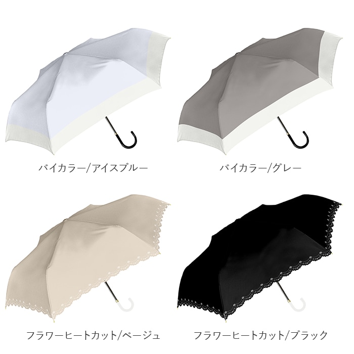 | 注意点 | この製品は紫外線遮蔽・遮光・遮熱効果を目的とした日傘です。生地にはPUコーティングを施しており、はっ水効果もあるため雨の日にもご使用いただけます。遮蔽率や遮光率等の数値は、製品ではなく生地に対しての検査結果であり、製品のデザインや実際の使用環境によって変わります。手元、または傘の先端がこわれたまま使用しないでください。骨の先端がこわれたまま使用しないでください。強風時や台風の時は破損する恐れがありますので、使用をお控えください。傘骨の構造部に手を触れないでください。ご使用後は水気を切って、陰干しして収納してください。色が移ることがあります。手元部材等が加水分解や経年劣化により破裂する原因になりますので車中などの高温多湿な環境に一定期間放置しないでください。降雨量が20mm以上の場合、ある程度使用されますと漏水の恐れがありますのでご注意ください。製品には構造上、骨同士が狭くなっている部分があり、骨に挟まれたり怪我をする恐れがありますので、手や指を入れないでください。製品には尖った部分があります。常に周囲の安全を十分にご確認の上使用してください。傘の開閉時及びシャフトの伸縮時には、顔や身体から離して使用してください。グラスファイバー骨部分が破損した際はトゲが刺さる場合がありますので、破損部分を直接触らないようにしてください。カメラやモニターの性質により、画像と実物の色の違いがある場合がございますのでご理解願います。 |