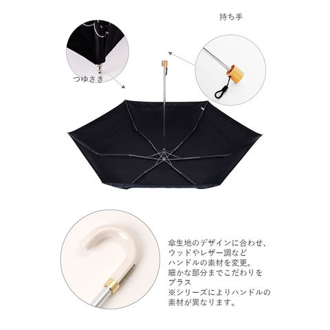 | 商品説明 | エレガント&キュートな晴雨兼用折りたたみ傘!LaceCut風なプリントで大人可愛いデザイン。持ち手はナチュラルなウッド仕様。親骨は少し大きめ55cm。スリムなボディでコンパクトな印象。手開きで開くとき指を傷めないプラスチックのろくろ。ブラックコーティング加工で遮光率100%。UV遮蔽率99%。UPF50+。遮熱効果30%で熱い日差しもしっかりカット。 |