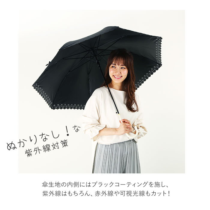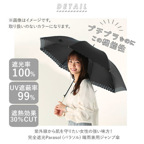 | 商品説明 | 紫外線から肌を守りたい女性の強い味方!完全遮光Parasol(パラソル)晴雨兼用ジャンプ傘。親骨58cmタイプ。親骨には軽くて丈夫なグラスファイバー骨を使用。しなやかな弾力性で強い風の日でも安心。傘生地の内側にはブラックコーティングを施し、紫外線はもちろん、地面からの照り返しも吸収し、赤外線や可視光線もカット!遮光率100%の生地を使用し、高い遮熱効果を実現。傘を差さずにいるときに比べ、熱をおよそ30%遮断。親骨の長さ58cmの大きめサイズで、日傘の下は木陰のような涼しさ。片手でサッと開きやすい、ジャンプ式。手荷物を持った時でもワンタッチで簡単開閉!細めにデザインされたレザー調のハンドルがエレガント。(※カラーにより、ハンドルの素材が異なります。)傘生地にははっ水加工を施し、日傘としてだけでなく、雨傘としても使用可能な晴雨兼用傘。突然の通り雨でも慌てずに対応できる♪落ち着いた色調の生地にレースやフラワー柄をちりばめたシンプルで上品な柄をラインナップ。傘生地フチにレースカット加工を施したエレガントヒートカットシリーズもオススメ。紫外線遮蔽率99%以上UPF50+。※UPFとは…紫外線先進国であるオーストラリアやアメリカ等で使われている紫外線防止指数。UPF値が高いほど紫外線防止効果が高く、最高値は50+です。 |