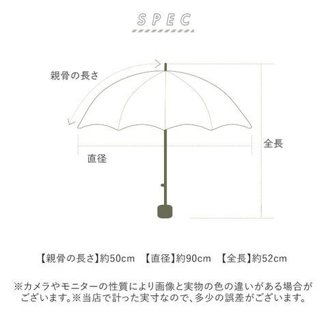 | サイズ | [親骨の長さ]約50cm/[直径]約90cm/[全長]約52cm [収納時の長さ]約17cm [収納時の幅]約7cm ※サイズは当店計測の実寸サイズです。実際の商品ならびにメーカー表記サイズとは多少の誤差が生じる場合がございます。あらかじめご了承ください。 |