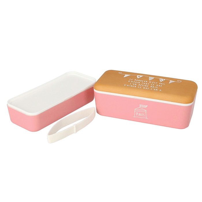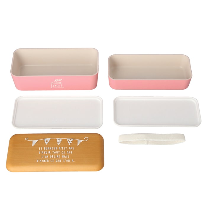 | 商品説明 | 木目調の上蓋とほっこりしたロゴがキュートな2段式ランチBOX。スリムタイプだから通勤や通学用のバッグにも楽々IN♪上段の中に下段が収まる入れ子式なので、食べ終わったらコンパクト収納することが可能!食洗機OK電子レンジOKなのも嬉しいポイント。容量は上段:450ml、下段:280ml。汁漏れしにくいシール蓋付きで、ゴムバンドも付属。 |