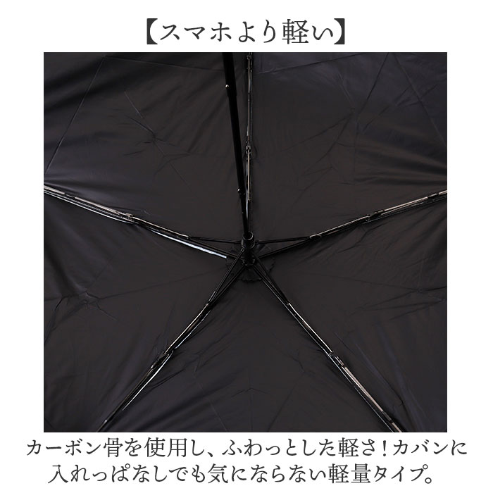| 商品説明 | 【ふわっとした軽さ】スマホより軽い重さがポイント☆コンパクトな見た目も嬉しい折りたたみ傘「Air+」【スマホより軽い】カーボン骨を使用し、ふわっとした軽さ!カバンに入れっぱなしでも気にならない軽量タイプ。【反りかえっても元に戻る】耐久性も兼ね備えたカーボン骨。風を受けて反り返っても元に戻る耐風仕様なのも嬉しい。【しっかり撥水】超軽量の撥水生地を採用!雨粒を素早く弾き飛ばす撥水性で雨に強い♪【晴れの日の紫外線カットに】カラーコーティングで、紫外線を99%以上カット!UPF50+効果で日焼け防止に◎【プライベートな木陰空間を】遮熱遮光効果もあり、直射日光を避けることによりプライベートな木陰空間を作れる。【スムーズかつ安全に開閉】開閉時に指先や爪を挟むのを防止する安全ろくろ付きで、簡単に開閉できる手開きタイプ。【年代を問わないデザイン】エイジレス対応のワントーンデザイン。無駄のないデザインで通勤通学にも。【男性の方にもオススメ♪】ベーシックカラーもあるカラー展開で、男性も使いやすいアイテム。【サッと留められる面ファスナー】サッとまとめられる面ファスナーテープの留めベルト。【収納袋付き】携帯にも便利!傘生地と同色のシンプルな収納袋付き。 |
