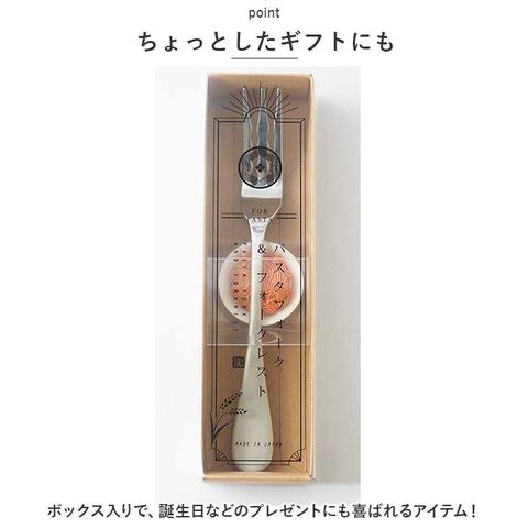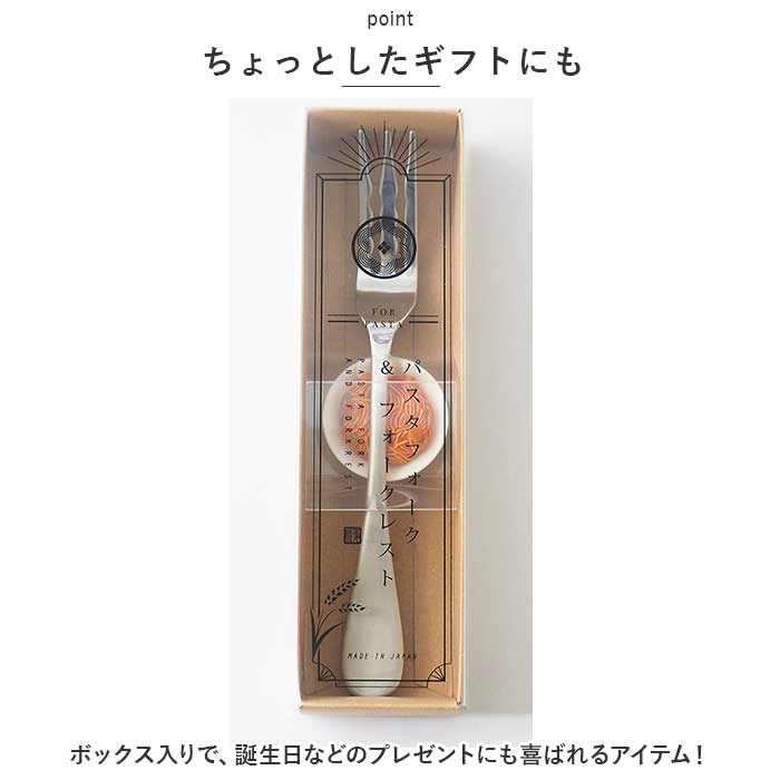 | 商品説明 | パスタの日の食卓にぴったり♪遊び心のあるテーブルコーディネートを演出してくれる、パスタフォーク&レストが登場。【スタイリッシュなフォーク】日本屈指の金属加工の町、新潟県燕市で作られたステンレス製。パスタを捉えやすい波形の刃&深い角度を付けることでパスタが落ちにくいのもポイント。【食品サンプルのようなレスト】とっても可愛いパスタモチーフ☆中央にフォークをセットすれば、気持ちよくフィット。【お手入れラクラク】フォークは家庭用の食洗機に対応◎(※レストは食洗機の使用不可です。)【ちょっとしたギフトにも】ボックス入りで、誕生日などのプレゼントにも喜ばれるアイテム! |
