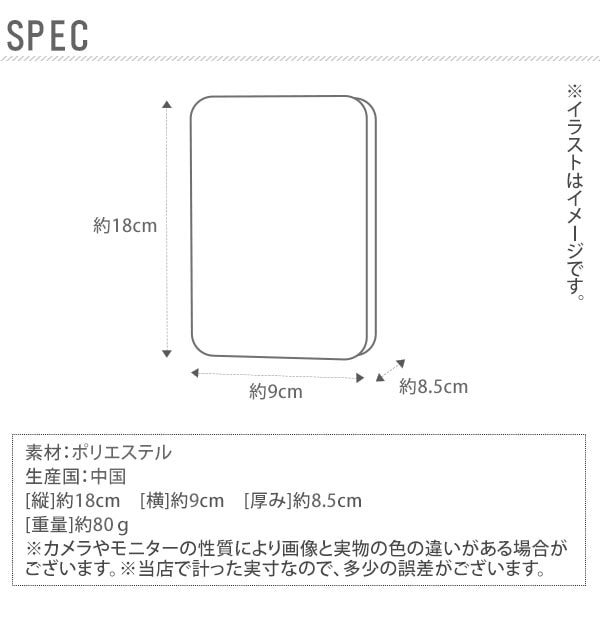 | サイズ | 縦 約18cm×横 約9cm×マチ 約8.5cm ※サイズは当店平置き実寸サイズです。実際の商品とは多少の誤差が生じる場合がございます。あらかじめご了承ください。 |