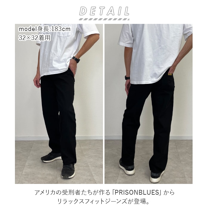 PRISON BLUES プリズンブルース Relaxed Fit Jeans【RinsedBlack】【L32xW30】