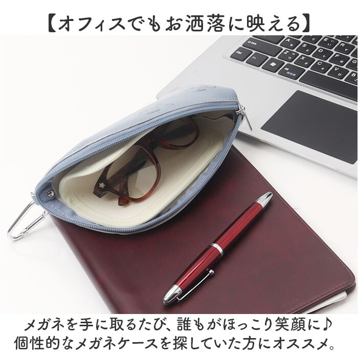 | 商品説明 | 【カバンに掛けて、可愛く持ち歩き】お気に入りのキャラが大切なメガネをふんわりガード「カラビナ付きメガネケース」が新登場!【ガバッと開いて取り出しやすい♪】側面のファスナーが大きく開いて、取り出しスムーズ。メガネの掛け外しの頻度が多い方に最適。【メガネを衝撃から守る保護材付き】ソフトケース内側に、滑らかなカーブでメガネを包む、ハードタイプの保護材が付いた安心仕様。【内側はふんわり起毛加工】ケース内側や保護材の表面はふんわり柔らかな起毛加工が施されており、レンズの傷つきも防止。【汚れに強く、長く使える素材使い】賑やかな絵柄をプリントしたケース表面は、汚れや水滴がサッと拭き取れるフェイクレザー素材。【カラビナで持ち運びスマート】取り外し可能なカラビナで、バッグのハンドルやベルトループに取り付けて、持ち運びも楽ちん!【使い方はアイディア次第♪】片手で軽く掴める程のサイズ感で、ペンポーチや化粧ポーチなど自分らしくアレンジしてもOK!【老眼鏡やPCグラスの携帯に便利】新聞や読書に老眼鏡、パソコン作業にはPCグラス・・・シーンに応じてメガネを着せ替えたい方に。【世界中で愛されるデザイン】大好きなキャラをカバンにちょこんと掛けてお出掛け!世界中で愛される絵柄をラインナップ。【オフィスでもお洒落に映える】メガネを手に取るたび、誰もがほっこり笑顔に♪個性的なメガネケースを探していた方にオススメ。 |