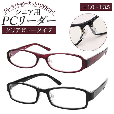| 商品説明 | パソコンやスマホの細かい文字が見えづらい時に便利!シニア用パソコンメガネ「パソコンリーダー クリアビュータイプ」が登場。目の疲れの原因となるブルーライトを約40%カット!パソコン作業やスマホの使用による、目の疲労感やチラつきを抑えてくれる◎室内で掛けても自然な表情の、クリアビューレンズ仕様。ブルーライトだけでなくUVカット効果もあるので、サングラスとしても活躍!テンプルには、軽量でしなやかな弾力性のあるナイロン樹脂素材「TR-90」を採用!疲れにくい快適な掛け心地。掛け心地を調整できる鼻パッド付きで、しっかりフィット◎度数は「+1.00」「+1.50」「+2.00」「+2.50」「+3.00」「+3.50」の選べる6タイプ。プライベートからオフィスまで大活躍のシニアグラス! |